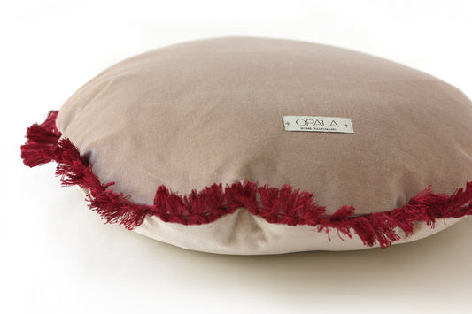 DAISY Rubi Taupe Fringe Velvet Cushion