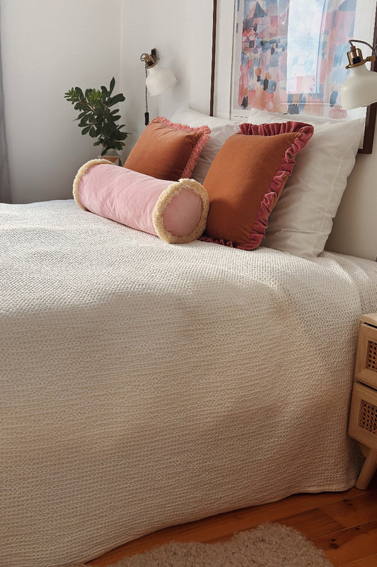 DAISY Velvet Bolster Fringed Cushion